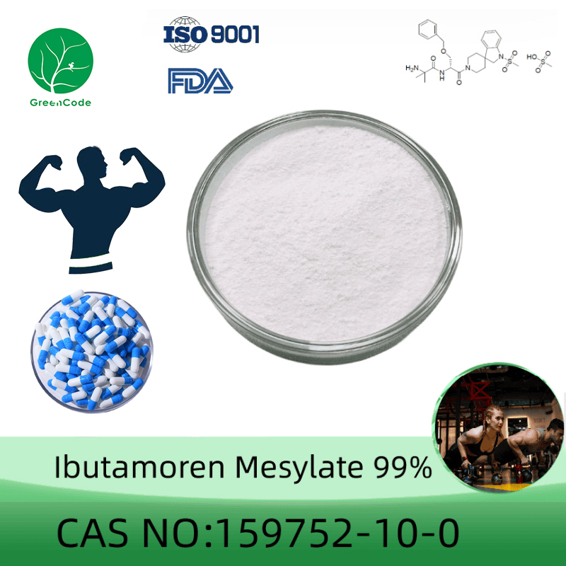 Currently, Ibutamoren Mesylate is mainly used in dietary supplements. Ibutamoren Mesylate has the potential to increase lean muscle mass. By enhancing growth hormone production, muscle protein synthesis may be improved, promoting muscle growth and overall strength. Additionally, Ibutamoren Mesylate may provide benefits in the area of post-workout recovery. Its ability to stimulate the secretion of growth hormone and IGF-1 may help heal connective tissue, shorten recovery time, and possibly prevent injury. Although Ibutamoren Mesylate has muscle-building potential, it may also aid in fat loss. It does this by stimulating metabolism and increasing energy expenditure, resulting in greater calorie burning and subsequent fat loss.
