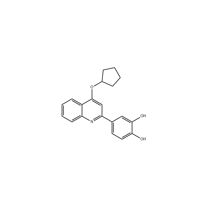 4-(4-(cyclopentyloxy)quinolin-2-yl)benzene-1,2-diol is a compound also called CMS121. The compound's structural complexity suggests it may have unique properties and potential uses. To understand its importance, it helps to identify the functional groups present and analyze their potential impact. The presence of the quinoline ring suggests that the compound may be biologically active. Quinoline-derived molecules are known for their diverse biological properties, including antibacterial and anti-inflammatory activities. Attachment of the cyclopentyloxy group may contribute to the solubility of the compound or enhance its biological activity through steric effects. In studies on HT22 cells, CMS-121 has demonstrated significant neuroprotective effects, effectively protecting these cells from ischemia and oxidative damage. Furthermore, CMS-121 has significant anti-inflammatory properties, indicating its ability to modulate inflammatory responses. By doing so, CMS-121 has the potential to reduce inflammation in various tissues and organs. CMS-121 has strong pharmacological activity as an inhibitor of acetyl-CoA carboxylase 1 (ACC1). Its potent inhibitory effect on ACC1 makes it a promising compound.