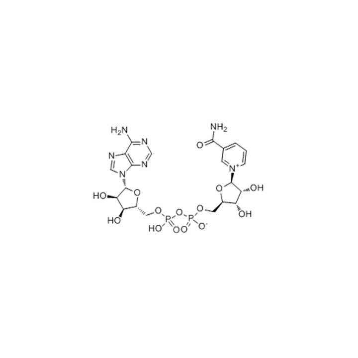 Beta-Nicotinamide Adenine Dinucleotide (Beta-NAD+), commonly known as Beta-NAD, is an important molecule found in all living cells. It plays an important role in various biological processes, including energy metabolism and cell signaling. Beta-Nicotinamide Adenine Dinucleotide is synthesized from niacin (vitamin B3) and ATP (adenosine triphosphate) through a series of enzymatic reactions. During cellular respiration, Beta-Nicotinamide Adenine Dinucleotide is a coenzyme that facilitates electron transfer during the breakdown of glucose and other biomolecules. This electron transfer is critical for producing ATP, the cell's universal energy currency. Without Beta-Nicotinamide Adenine Dinucleotide, cells cannot efficiently produce energy and perform their vital functions. In addition to its role in energy metabolism, Beta-Nicotinamide Adenine Dinucleotide serves as a substrate for various enzymes involved in cell signaling and regulation. One well-known group of enzymes that utilize Beta-Nicotinamide Adenine Dinucleotide are Sirtuins, which are involved in a variety of cellular processes, including DNA repair, gene expression, and aging. These enzymes require Beta-Nicotinamide Adenine Dinucleotide as a cofactor to exert their enzymatic activity..